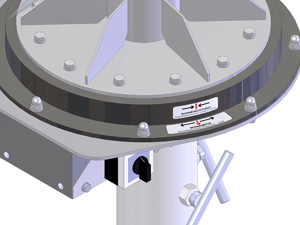 Der Schwenkantrieb wird für eine optimale Flächenbeschneiung benutzt. Durch die permanente Schwenkung des Schneeerzeugers kann der Schnee besser auskühlen, dadurch wird eine noch bessere Schneequalität erreicht.